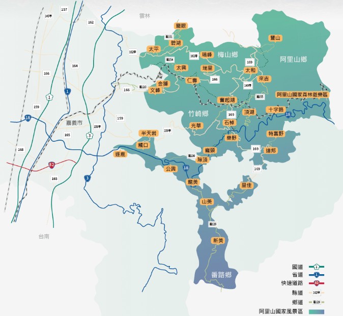 這邊將詳細解釋從台北或其他主要城市如何前往阿里山,以及在當地的移動方式,您可以參考以下地圖的景點標示來選擇最適合您的交通方式。