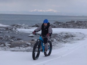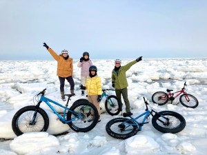 從獨木舟區域騎乘胖胎車前往桑拿區。流冰季節是預約困難的人氣活動。