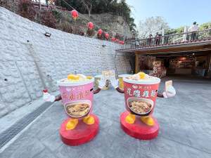 也被暱稱為「泡麵土地公」土地公右手捧元寶、左手端泡麵,白眉白鬍的模樣,看起來就像東方的聖誕老公公,親切又討喜。